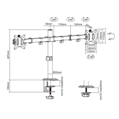 SUPPORTO X DOPPIO LCD/TV DA TAVOLO 17”/32” EQUIP 650167SUPP.FINO A 9KG (X SCHERMO) – VESA: 100X100 -EAN: 4015867237632