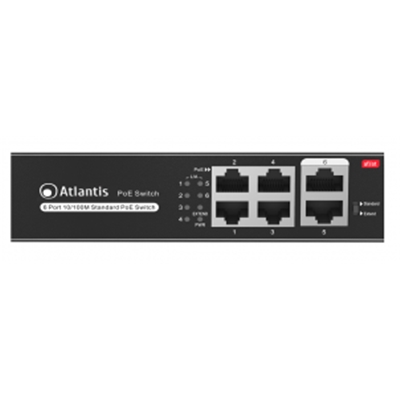 SWITCH 6P LAN 10/100M ATLANTIS A02-F6P4-65W DI CUI 4P POE FINO 60W – RACK 19” – METALLO